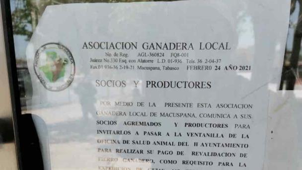 Ganaderos de Macuspana anunciaron que no pagarán al Concejo Municipal de Macuspana la revalidación de los títulos de marca para herrar ganado bovino, por considerar injusto que se les esté cobrando cuando no obtuvieron ningún tipo de apoyo de las autoridades municipales tras las pasadas inundaciones.