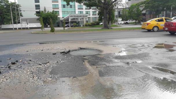 Hasta el lugar arribó personal del Sistema de Agua y Saneamiento (SAS) para arreglar la fuga, por lo que colocaron señaléticas para evitar que automovilistas pasen a exceso de velocidad.