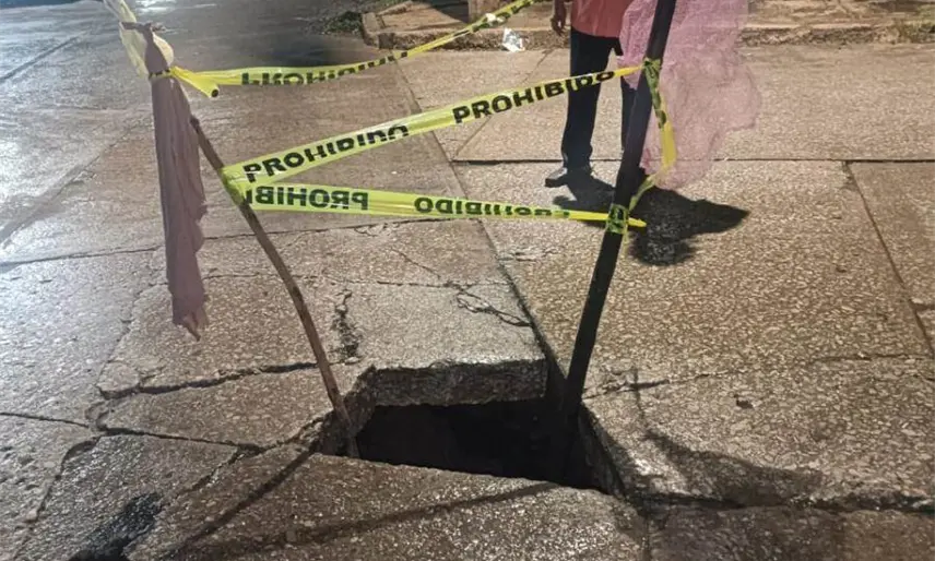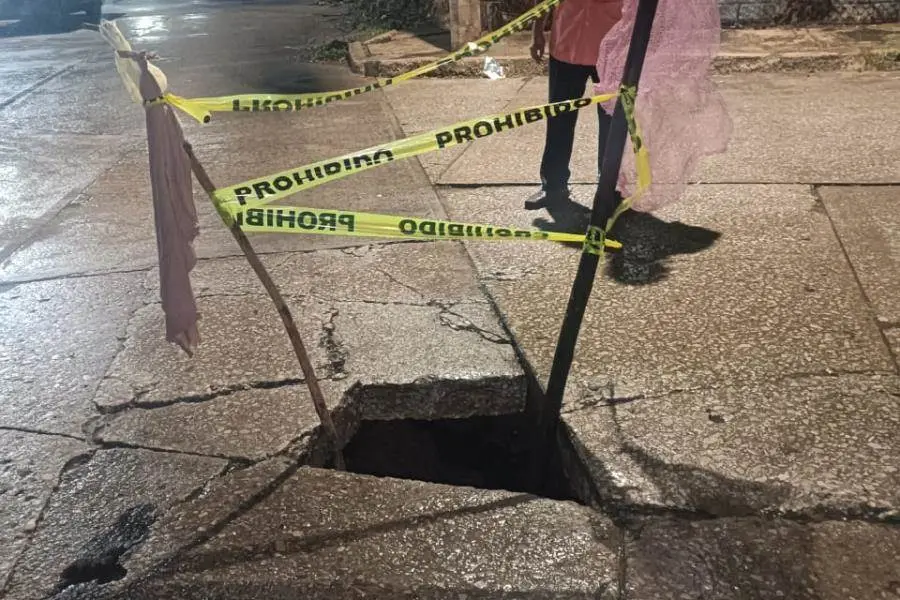 En redes sociales, los pobladores expusieron que el hundimiento representa un riesgo para peatones y vehículos que transitan por la zona, además de que podría agravarse si no se atiende de manera oportuna.
