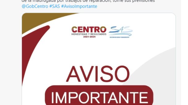 A través de un comunicado, el Sistema de Agua y Saneamiento indicó que el paro programado de la planta será a partir de las 3 de la madrugada.