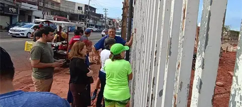 Este lunes, un grupo de personas se reunió afuera del lugar donde se edifican las viviendas para pedir hablar con el encargado del proyecto.