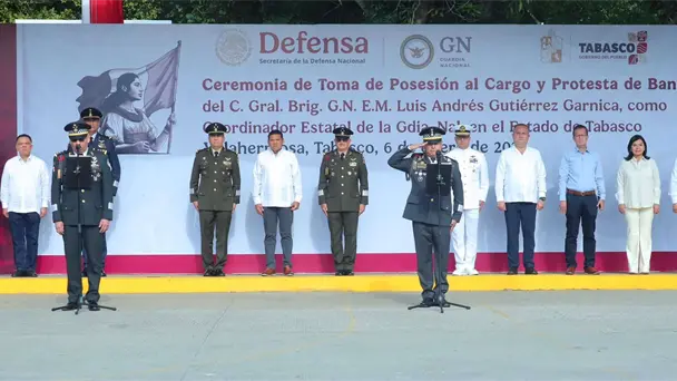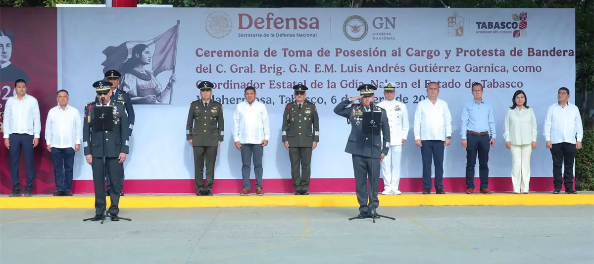 "Por disposición de la ciudadana presidenta constitucional de los Estados Unidos Mexicanos y comandanta suprema de las Fuerzas Armadas Mexicanas, con fecha primero de enero de 2026 se reconocerá como Coordinador Estatal de la Guardia Nacional en el estado de Tabasco al ciudadano General Brigadier de Guardia Nacional de Estado Mayor, Luis Andrés Gutiérrez Garnica, aquí presente, a quien se le guardará el respeto debido a su jerarquía y se observará todo lo que mandare referente al servicio de palabra o por escrito de acuerdo con nuestras leyes y reglamentos", dijo.