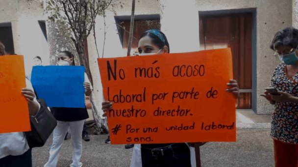 Los inconformes exigen un alto al acoso laboral, así como respeto a los derechos laborales del personal, dichas demandas, según algunas cartulinas que portan, fueron enviadas a través de un oficio con fecha del 23 de julio.