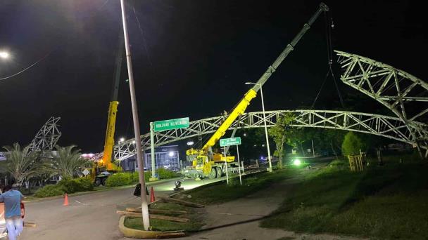 Tras 15 horas de trabajo retiran arco metálico del Parque Tabasco