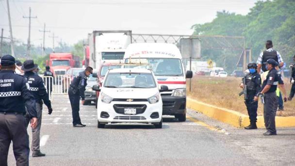 Once accesos y salidas de la ciudad de Villahermosa, son vigiladas por elementos de la Secretaría de Seguridad y Protección Ciudadana y la Secretaría de Movilidad, como parte del decreto gubernamental por la contingencia del coronavirus.