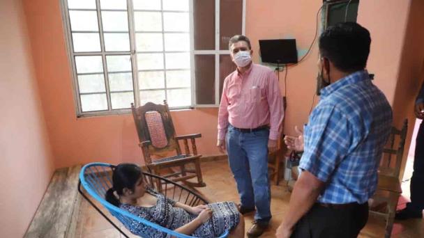 Visita Evaristo Hernández a joven con discapacidad visual que cayó en Socavón en Tamulté de las Sabanas
