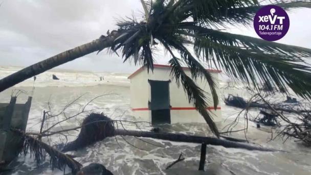 Devora el mar 50% de la comunidad El Bosque, Centla