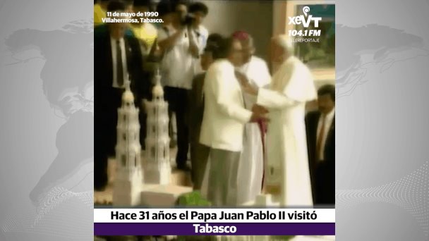 El 11 de mayo de 1990, el Santo Padre estuvo en tierras tabasqueñas, donde celebró la Santa Misa en lo que hoy es Plaza Crystal, en #Villahermosa, en la que se consagraron mil 500 ostias, participaron 800 sacerdotes y 100 personas comulgaron de mano de