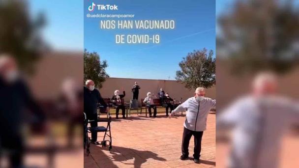 Abuelitos de la Unidad de Estancia Diurna Clara Campoamor, en Granada, España, celebraron con un baile en TikTok tras haber sido vacunados contra la COVID-19.