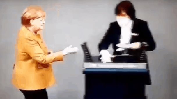 Angela Merkel olvida su cubrebocas tras emitir un discurso y su reacción se hizo viral
