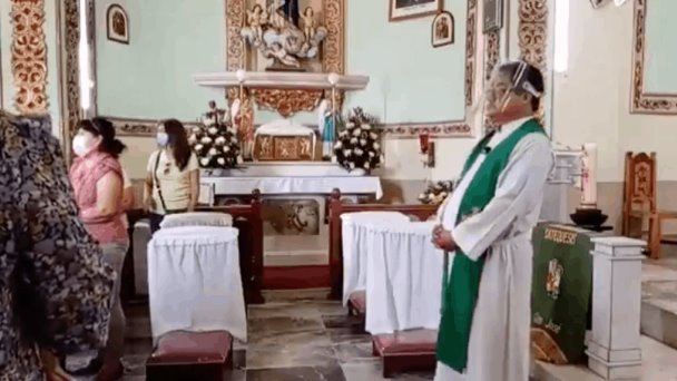 En redes sociales circuló un video del momento en que se escucha que empiezan los disparos afuera de la iglesia, mientras el sacerdote está dando su sermón.