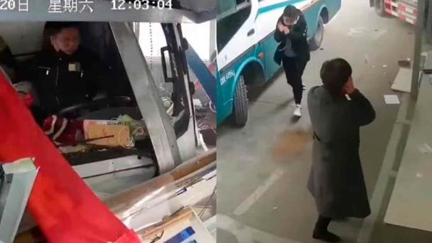 En seguida el conductor del vehículo intenta sacar el pesado automotriz de la zona para que le brinden los primeros auxilios a la mujer lesionada; de acuerdo con medios los hechos ocurrieron en un poblado de China, aunque no se sabe con exactitud en qué parte, además de que no se detalla el estado de salud de la fémina tras el accidente.