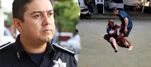 En las imágenes difundidas en redes sociales, se aprecia que el exsecretario de Seguridad Pública tiene un arma en la mano, mientras amedrenta a la fémina tirada en el suelo.