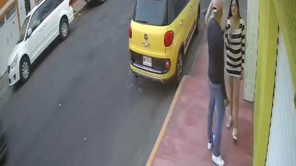 El video muestra el momento en que la mujer caminaba junto a un hombre por calles de la avenida Venustiano Carranza, la tarde del domingo.