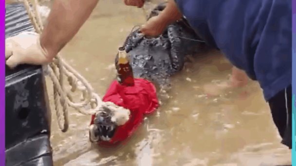 Capturan otro lagarto en el fraccionamiento Pagés Llergo; los habitantes le colocan una cerveza… ¡pa' la foto!