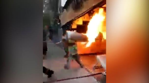 Con tanque de gas en llamas sobre el hombro, bombero evita explosión en la CDMX