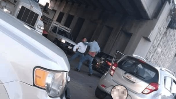 Un par de conductores protagonizaron una pelea en uno de los retornos del puente “Los Monos III”, en la salida de la Villahermosa a Cárdenas.