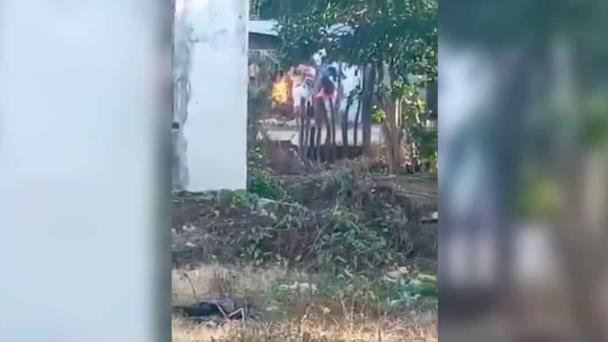 En el video se puede ver al menor con fuego en su cuerpo corriendo y gritando en el patio de su casa, mientras a los lejos es grabado por unos vecinos.