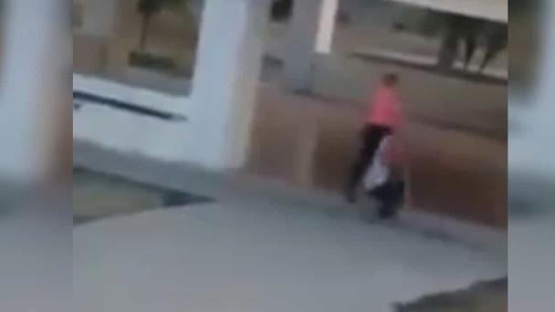 Sin embargo, debido a que el menor muestra resistencia la mujer lo hace avanzar arrastrándolo por el piso.