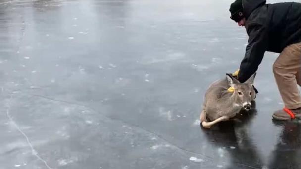 En Wisconsin, un hombre rescata a ciervo tras haber quedado varado en un lago congelado