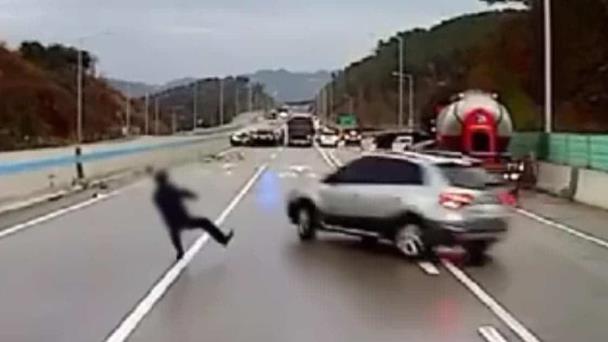 ¡Engaña la muerte dos veces! Hombre en Corea evitar ser atropellado; alertaba sobre mega carambola