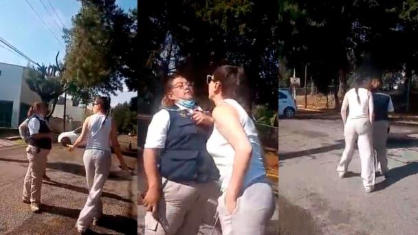 A través de redes sociales fue exhibida una mujer que golpea y escupe en la cara a una guardia de seguridad en Metepec, Estado de México; cibernautas la apodaron “Lady Escupitajo”.