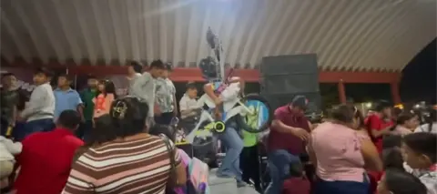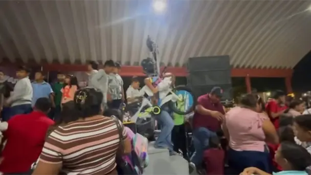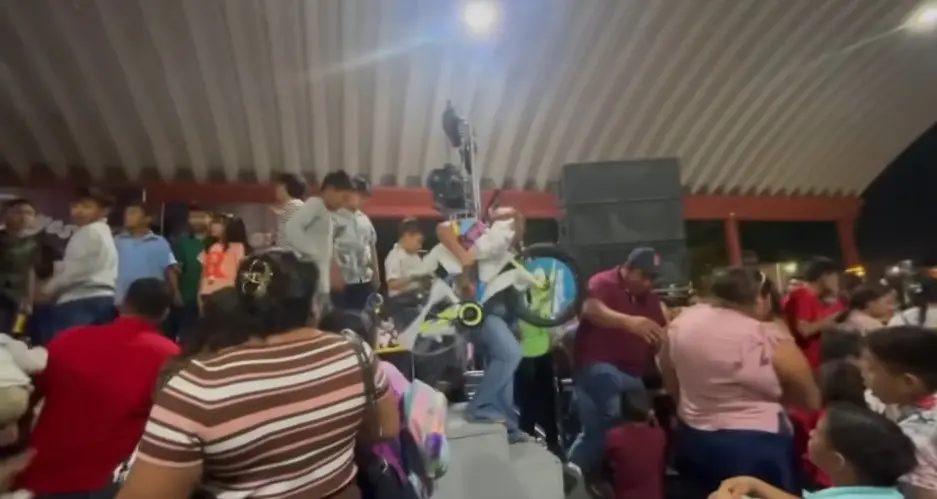 Incluso, en uno de los clips se observa cómo el maestro de ceremonias solicita a los adultos que mantengan el orden; sin embargo, estos continuaron subiendo al escenario y peleándose entre sí por los obsequios.