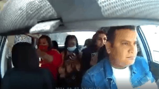 En la grabación se muestra cómo la mujer incluso le arrebata el celular al conductor mientras lo insulta, y le exige que la lleve a su destino, además al final cuando descienden del vehículo, una de sus acompañantes le rocía gas pimienta.