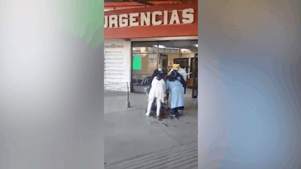 En un video con duración de dos minutos 54 segundos se puede observar cómo la mujer se encuentra parada a la entrada del nosocomio, mientras que ya se encuentra acompañada de personal médico; el ciudadano que graba la escena describe lo ocurrido: