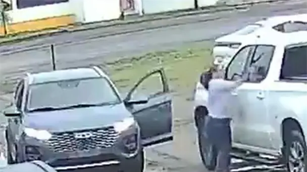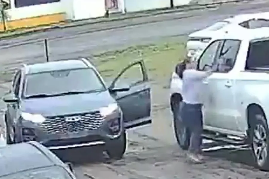De acuerdo con un video que circula en redes sociales, se observa a una fémina de edad avanzada descender de una SUV Chirey Tiggo 2 Pro, color gris. Posteriormente levanta una piedra y empieza a golpear una camioneta Chevrolet blanca.