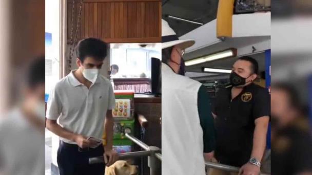 A través del video, que fue grabado por sus acompañantes, se observa el incómodo momento en el que empleados del lugar expresan que no podían dejarlo pasar.