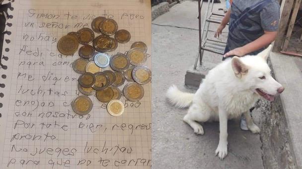 “Hola Simón, no puedo verte por el Covid. Mi papá no me deja salir. Te mando tu comida y tres pesos. Mi papá no tiene trabajo. Pórtate bien, te extraño”, se lee en el mensaje.