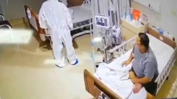 A través de un video captado por una cámara de seguridad del hospital, se observa el momento en que una enfermera ingresa a la sala con un traje anticovid y se acerca a la cama en donde se encontraba la mujer.