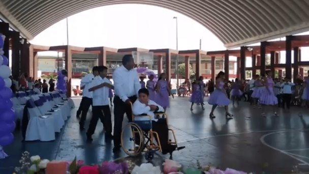 Un padre de familia de la escuela primaria “Carlos A. Madrazo” en la Villa Tamulté de las Sabanas, dio ejemplo de inclusión al aprenderse la coreografía del vals para ayudar a su hijo discapacitado a bailar en la graduación escolar.