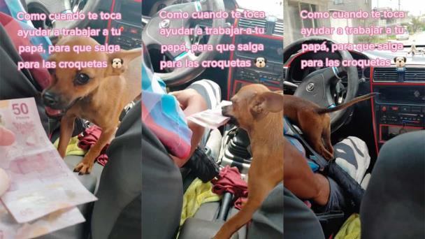 [VIDEO] Perrita acompaña a su dueño taxista y le ayuda a cobrar