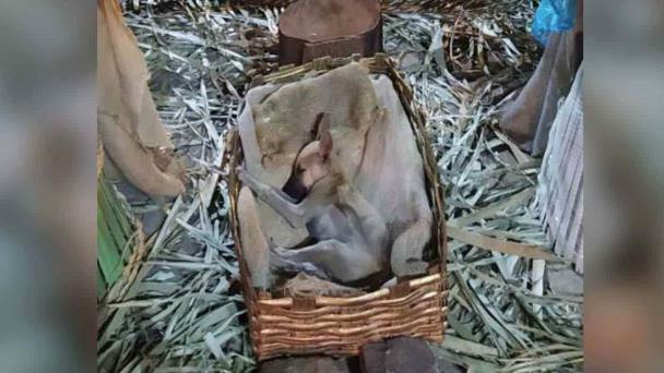 Perrito es captado durmiendo en el nacimiento del “Niño Dios” y lo adoptan