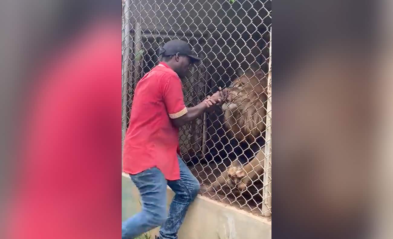 En Jamaica, un hombre perdió uno de sus dedos luego de molestar a un león que estaba detrás de un alambrado.